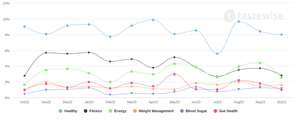 Pictured: Functional Health Consumer Demands for Gummies, Oct. 2022-Oct. 2023 via Tastewise.