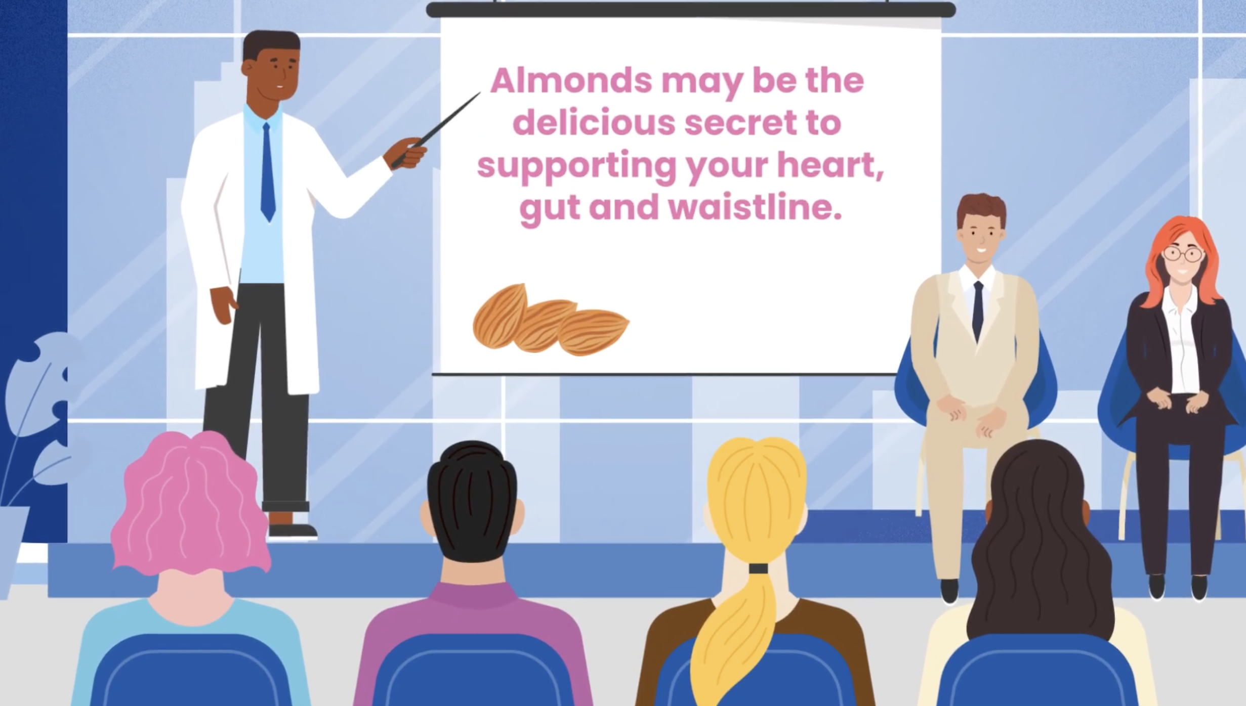 Health Benefits Top Scientists Agree: Eating almonds daily is good for our heart, gut and waistlines Research finds that eating almonds daily supports health in multiple ways and consuming at least 50g per day is associated with slight weight loss in some people. Check out our NEW Cardiometabolic Health Infographic Research Results Why this Information Matters to You Nutritional Power of Almonds How to Enjoy Almonds Everyday Play Video In a new peer-reviewed consensus paper, a group of the world’s leading health and nutrition experts reviewed nearly 30 years of research to conclude unanimously that eating almonds daily is a proven strategy to support overall heart health, weight management, and the gut microbiome – all of which are components of cardiometabolic health.Cardiometabolic health, a key factor in assessing overall well-being, refers to the overall health of the cardiovascular system (heart and blood vessels) and how our bodies digest food. #researchResults Research ResultsThe team of scientists and physicians concluded that eating almonds daily:May positively impact heart health by: Reducing LDL-cholesterol (5.1mg or ~5% average reduction in pooled results) Reducing diastolic blood pressure in small but significant amounts (0.17-1.3 mmHg reduction in pooled results), both of which can result in more significant benefits when combined with other heart-healthy foods.Does not result in weight gain; higher almond consumption (at least 50g or 1.8 oz. per day) may be associated with slight weight loss in some study participants. May increase beneficial gut bacteria, potentially aiding metabolic health. More studies are required in this area due to limited research.Can result in a reduction in fasting blood glucose and HbA1C specifically in Asian Indians with prediabetes.** Download Cardiometabolic Health Infographic “ "Almonds represent a powerful nutrient package and are one of the most researched foods in the world. Researchers from around the globe came to the almond cardiometabolic roundtable. Bringing together diverse perspectives and deep expertise, the group unanimously concluded that almonds positively impact cardiometabolic health. Potential mechanisms include reducing LDL-cholesterol and modestly decreasing diastolic blood pressure, aiding in healthy weight management and supporting gut health." Dr. Adam Drewnowski,Co-author of the paper, professor of epidemiology at the University of Washington and world-leading nutrition expert #importantInfo Why this Information Matters to YouThe scientists focused on how eating almonds affects the cardiovascular system (which includes our heart and blood vessels) and metabolism (how the body breaks down food) – together known as cardiometabolic health. After reviewing the evidence, the scientists agreed that almonds support cardiometabolic health by positively impacting LDL-cholesterol and diastolic blood pressure, promote beneficial gut bacteria, support weight management, and can help maintain healthy blood sugar in Asian Indians with prediabetes. This in turn may help to lower the risk of serious health conditions such as heart disease, stroke, and type 2 diabetes. Learn more about how almonds play a role in a heart-healthy diet and can support healthy blood sugar levels for managing diabetes. “ “What’s remarkable is the consistency of the evidence in the published literature: adding 50 grams of almonds per day to the diet does not lead to weight gain—in fact, some studies show a slight reduction in body weight. Understanding why—whether through increased satiety, digestive factors, or effects on the microbiome—is the next step toward developing smarter, more targeted nutrition guidance.” France Bellisle, PhD at Laval University in Quebec and University of Paris #nutritionInfo The One and Only Nutritional Power of AlmondsAlmonds have a unique nutritional package which positively supports cardiometabolic health risk factors. In a 28g serving (1oz), almonds provide 6g of protein, healthy fats (13g of unsaturated fats and only 1g of saturated fat), and 4g of fiber, nutrients that are specifically called out in the new consensus paper, to benefit cardiometabolic health. In fact, scientific evidence suggests but does not prove that consuming 1.5 ounces (43g) of most nuts, including almonds as part of a diet low in saturated fat and cholesterol may reduce the risk of coronary heart disease. #enjoyEveryday How to Enjoy Almonds Every Day:Almonds are an ideal snack, they’re also perfect for topping cereal, yogurt and salads or adding to dishes like curries and stir-fries. Almond & Brussel Sprout Salad Homemade Tropical Trail Mix Almond Mode Oats Power-Up Green Smoothie Frequently Asked Questions About Cardiometabolic Health What is cardiometabolic health? Cardiometabolic health, a key factor in assessing overall well-being, refers to the overall health of the cardiovascular system (heart and blood vessels) and metabolism (how our bodies digest food). Why is cardiometabolic health important? Maintaining good cardiometabolic health can reduce the risk of developing serious chronic conditions like heart disease, stroke and type 2 diabetes.A group of the world’s leading health and nutrition experts reviewed nearly 30 years of research investigating almonds and health. They unanimously concluded that eating almonds daily supports cardiometabolic health. The scientists agreed that almonds may positively impact LDL-cholesterol and diastolic blood pressure, promote beneficial gut bacteria, support weight management, and can help maintain healthy blood sugar in Asian Indians with prediabetes. Can diet help with cardiometabolic health? Yes! In a consensus paper published in a top nutrition journal, scientists agreed that eating almonds daily is good for our heart, gut and waistline - all of which are components of cardiometabolic health. Scientific evidence also suggests but does not prove that consuming 1.5 ounces (43g) of m